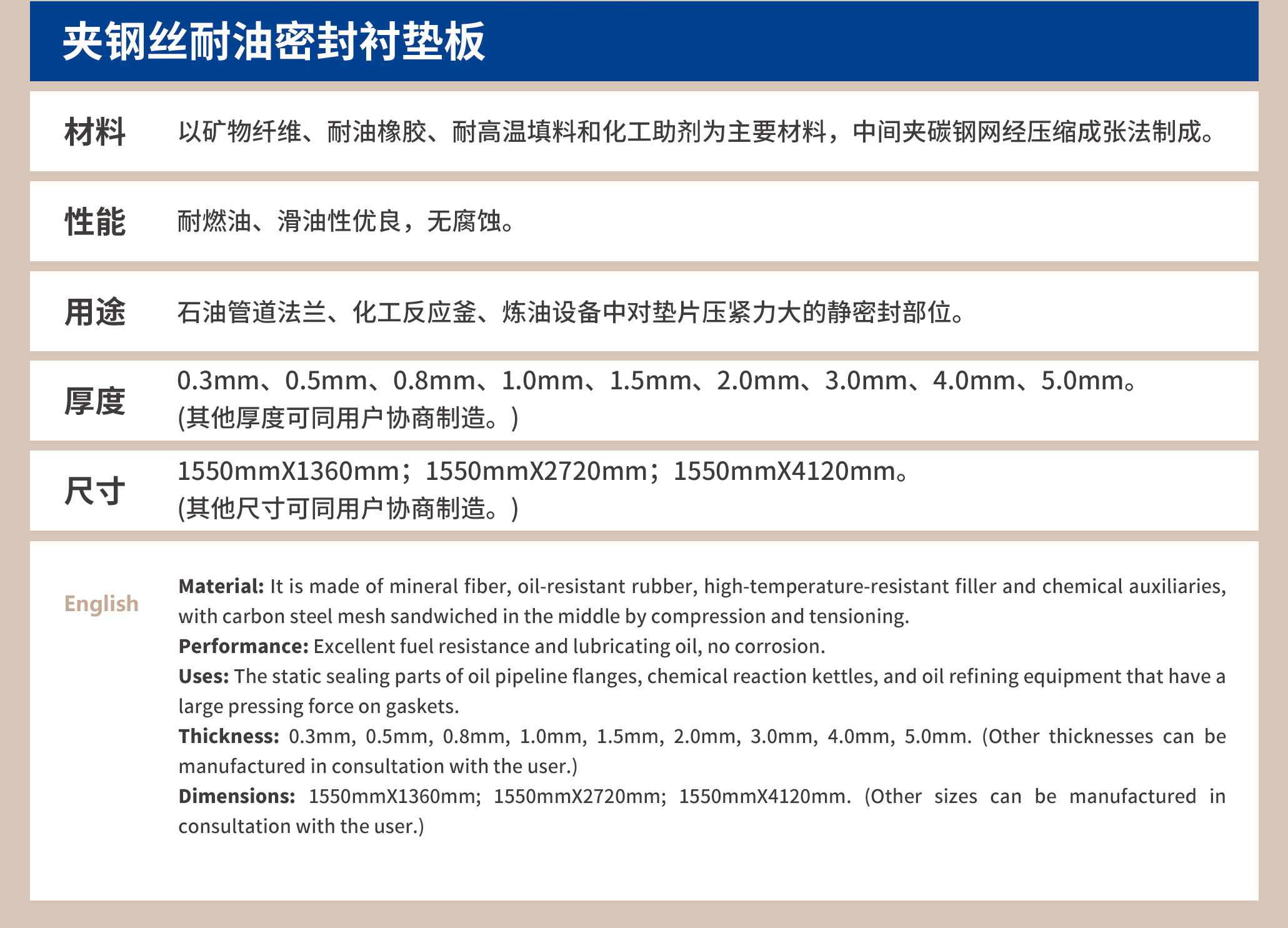 耐油密封衬垫板